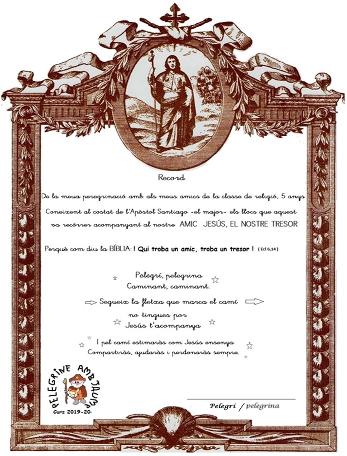 El pelegrí Jaume us ha deixat aquest diploma que es dóna als pelegrins quan arriben a l'última etapa del viatge